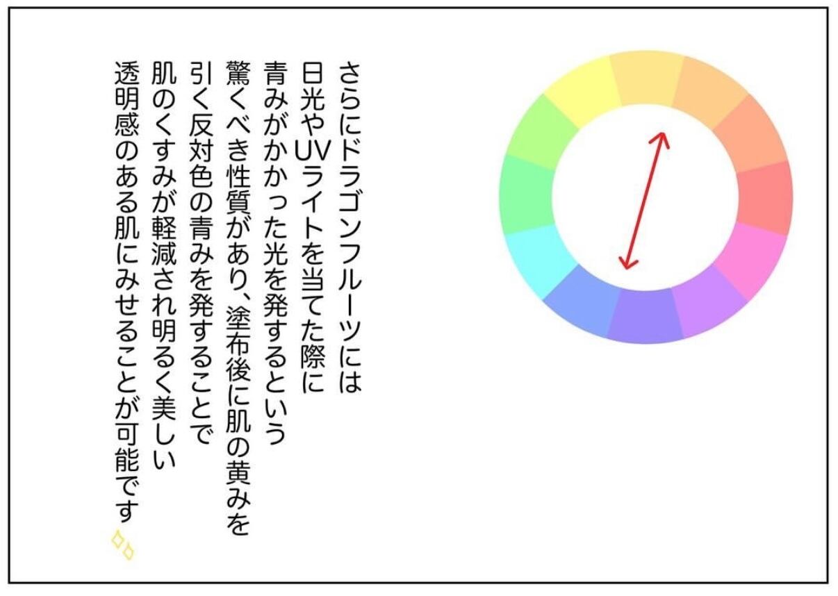 青色の光を放ち、肌の黄ぐすみを即座に補正