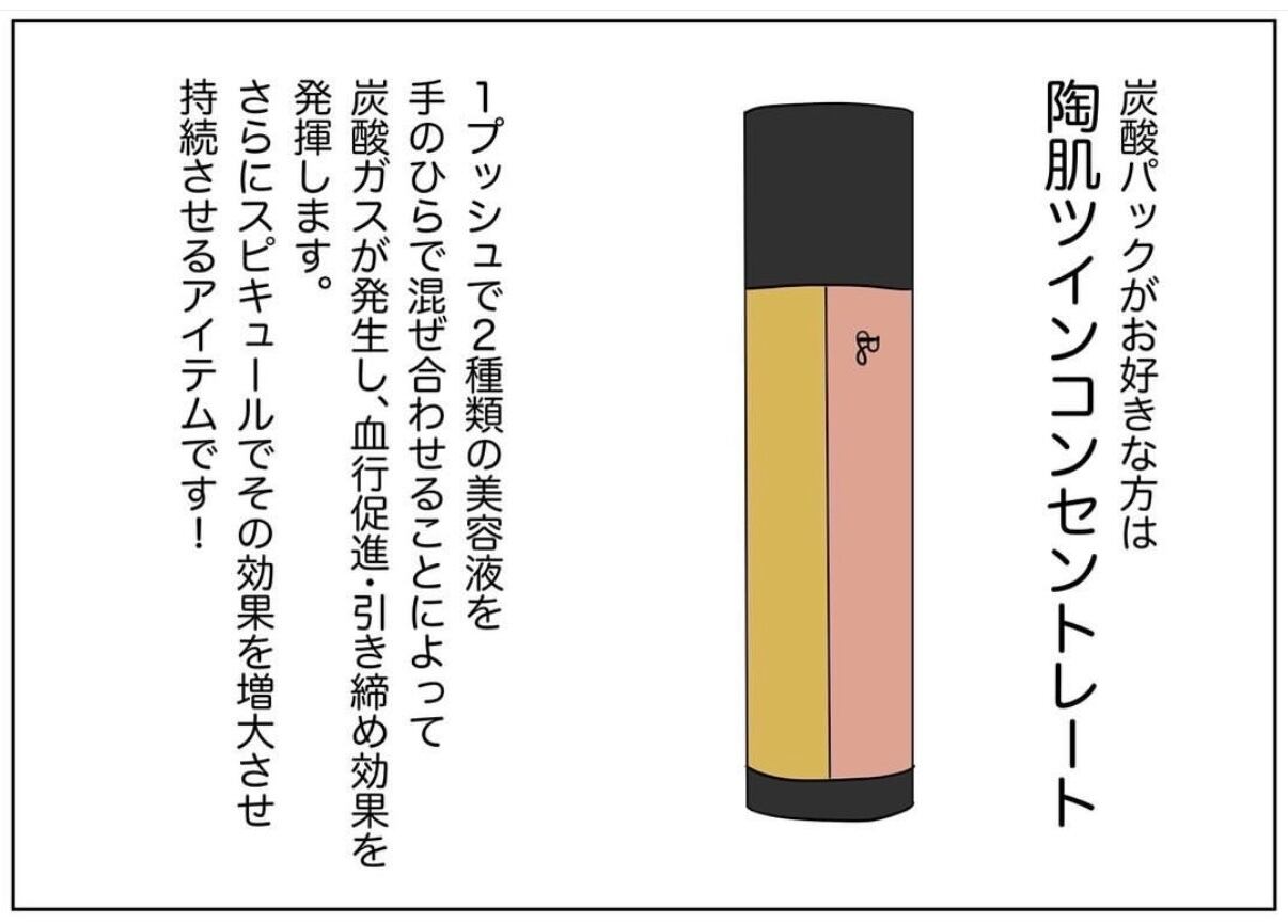ワンプッシュで2種類の美容液が同時に出て、塗ると炭酸が発生します。
